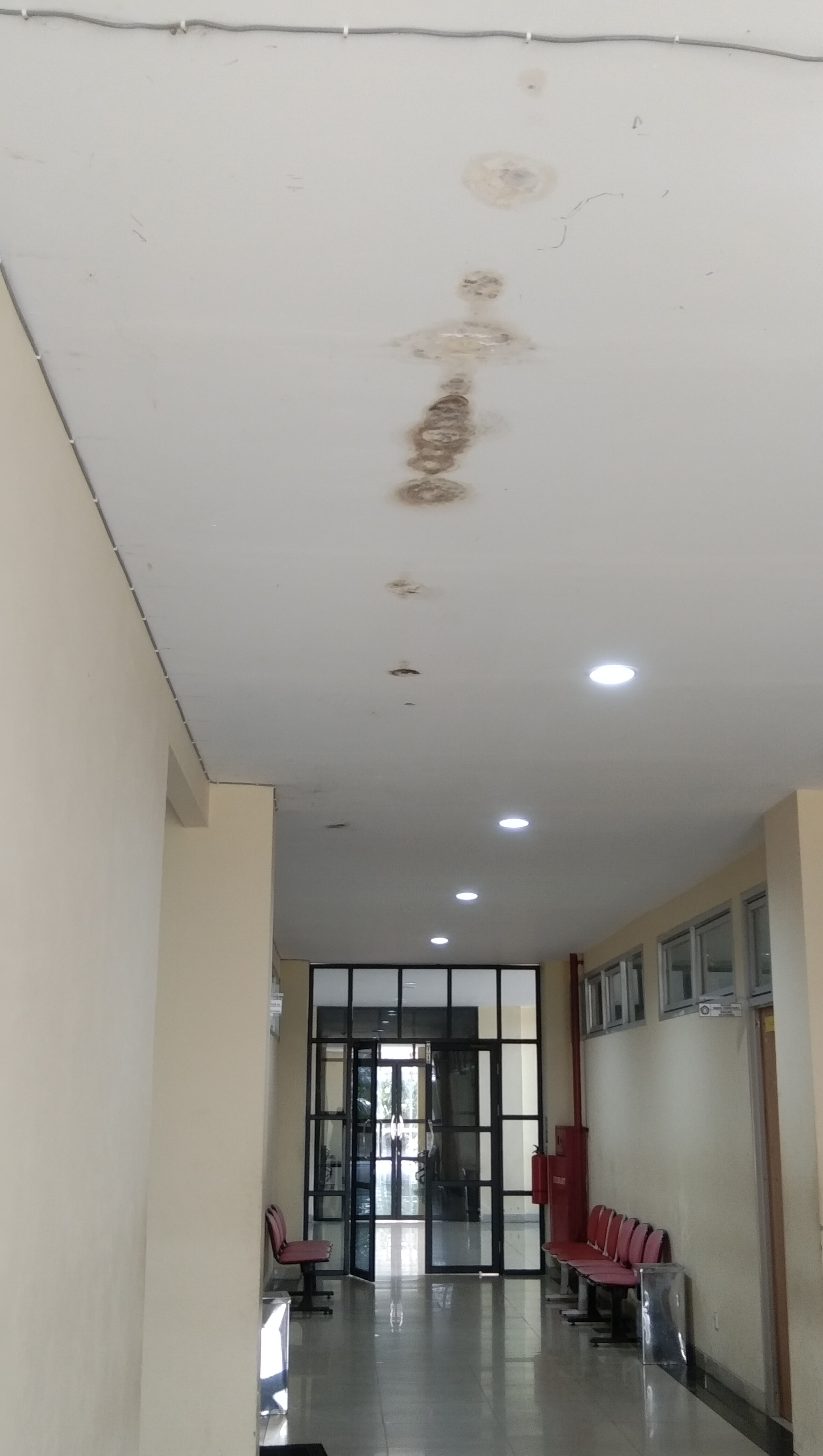 Rembesan air di dek/plafon gedung sehingga menjadi rusak, di lantai 2.